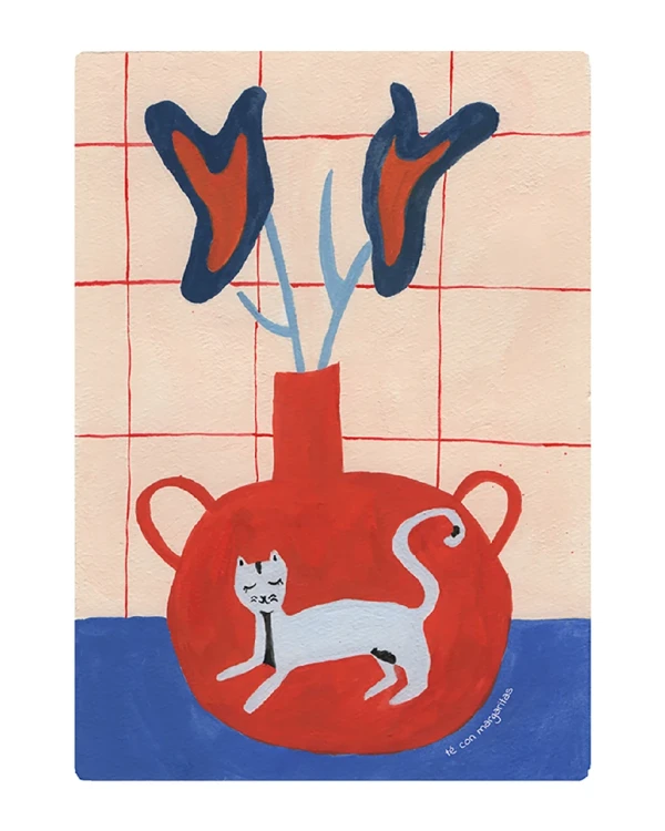 Pintura digital de Te con Margaritas sobre papel texturado "constelacion".
