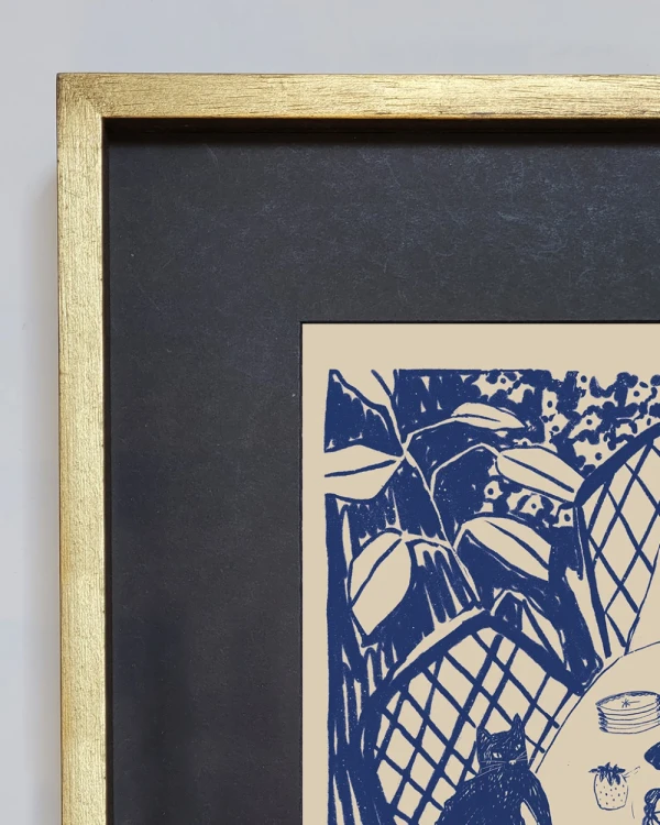 Azul - 21 x 30 / Marco recto de 1.5 x 3.5 en L dorado mas paspartu negro