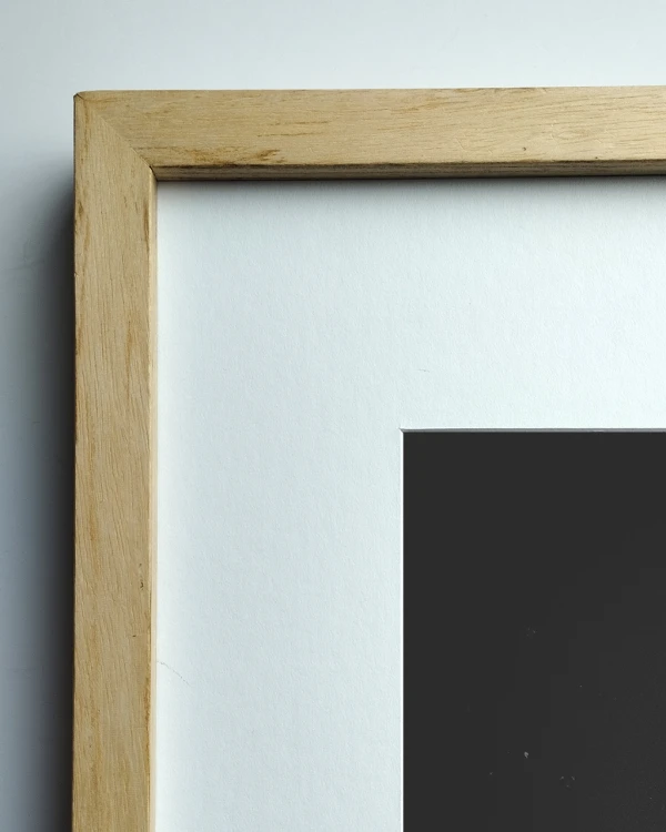 La foto esta enmarcada con marco en L recto mas 10 cm de passepartout por lado, podes elegir 3 medidas diferentes de impresion.