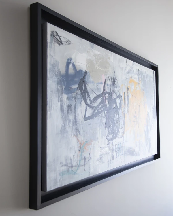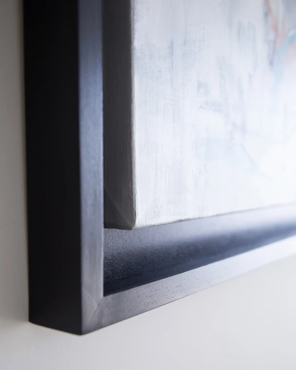 Obra original de Gaby Perez sobre tela enmarcada en caja con fondo y marco en negro