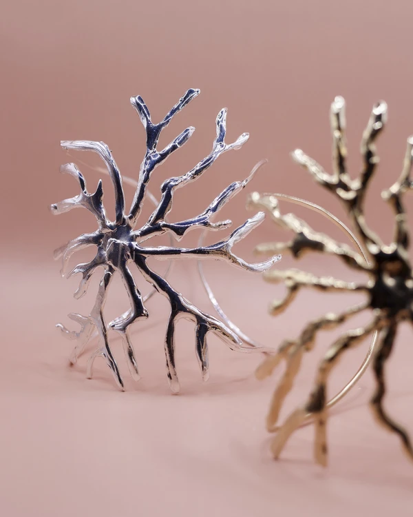 Piezas realizadas a mano en plata de ley 925 maciza y bronce fundido bañadas en oro.