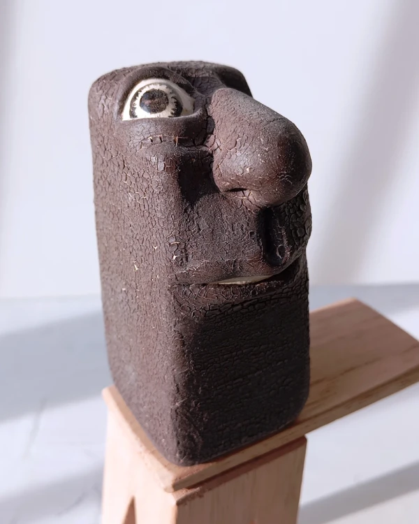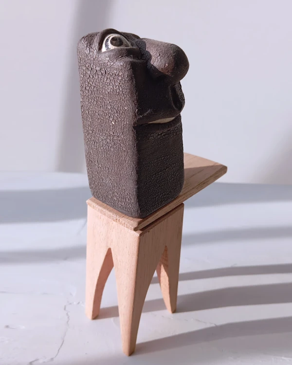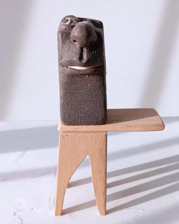 Pieza de ceramica con base de madera del ceramista Dario Fromer, esta obra forma parte de la reconocida coleccion del artista de diferentes retratos