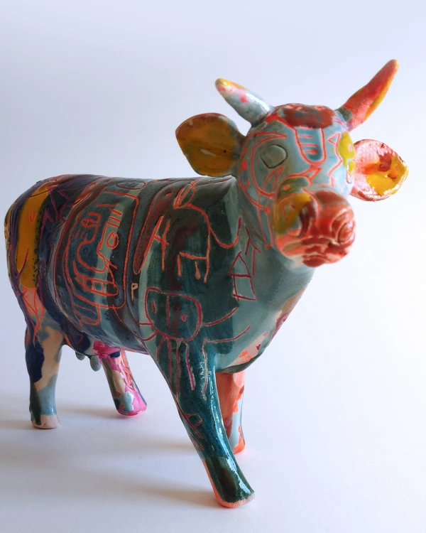 Pieza de ceramica esmaltada intervenida por el artista grafico Javier Luengo Bustamante