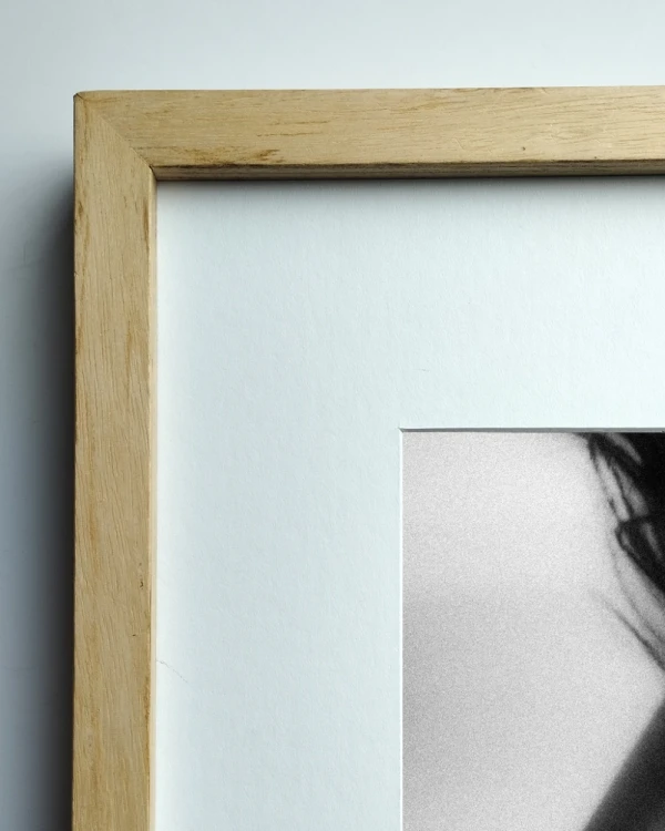 La foto esta enmarcada con marco en L recto mas 10 cm de passepartout por lado, podes elegir 3 medidas diferentes de impresion.