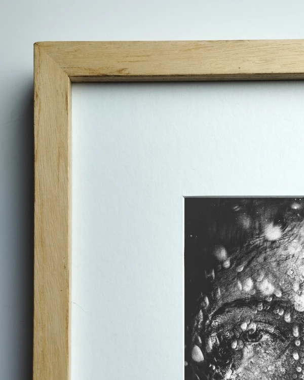 La foto esta enmarcada con marco en L recto mas 10 cm de passepartout por lado, podes elegir 3 medidas diferentes de impresion.