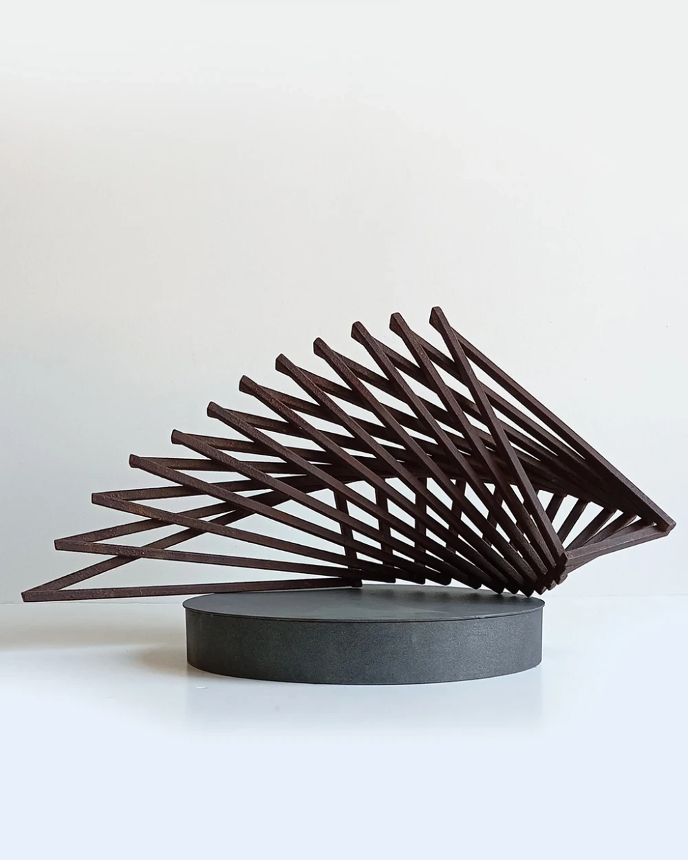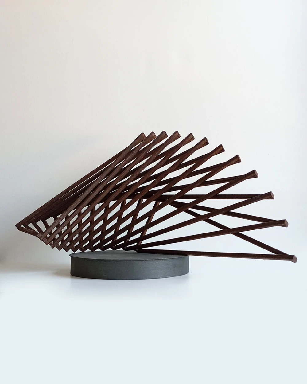 Escultura de Federico Rolla hecha integramente en hierro oxidado con tratamiento de laca poliuretanica.