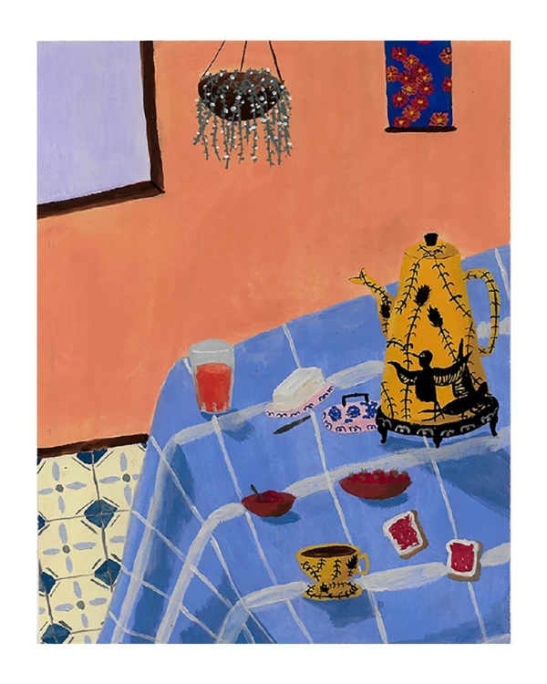 Pintura digital de Te con Margaritas en papel "constelacion".