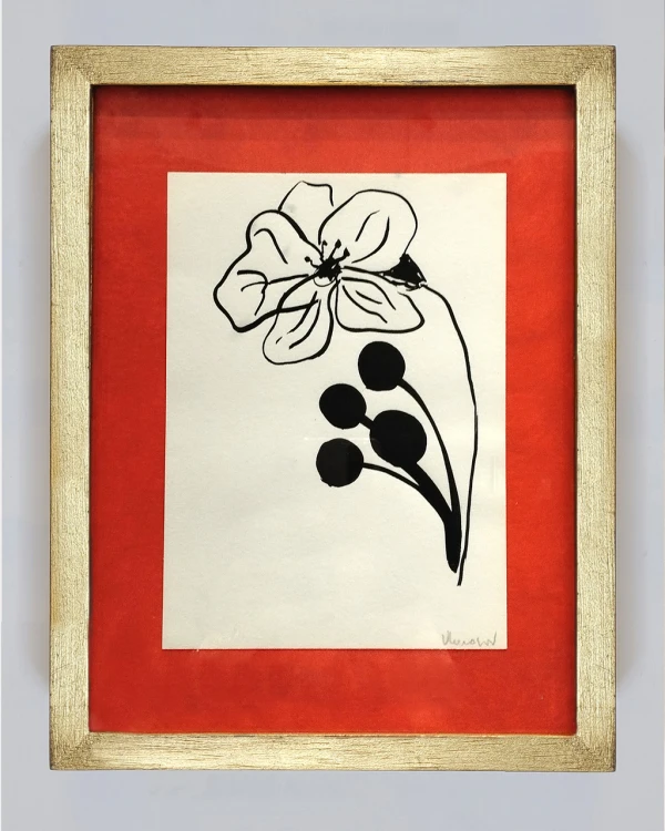 Flor - Marco chato dorado + passepartout colorado