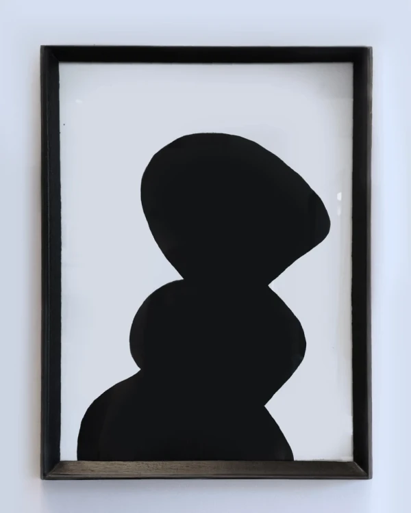 Serie de pinturas en acrilico de la artista Julia Martinez enmarcadas en piramidal mini en negro