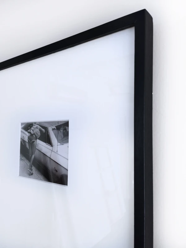 Foto de catalogo en blanco y negro impresa en papel fotografico 300 grs enmarcada en varilla l 12 x 20 negro liso con paspartu sobredimensionado