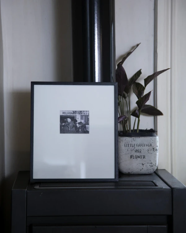 Foto en blanco y negro impresa en papel fotografico enmarcada con ventana de paspartu importado y gran margen