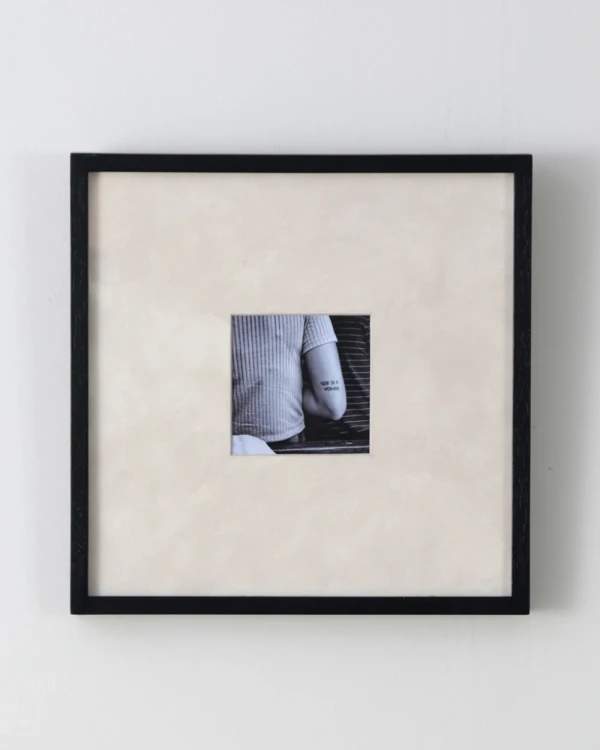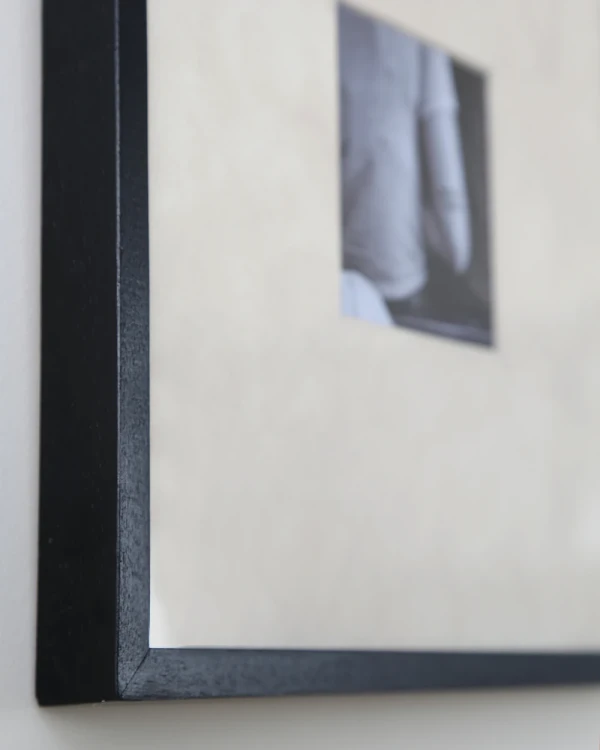 Foto en blanco y negro impresa en papel canson 180 grs enmarcada con passepartout arena y marco finito negro