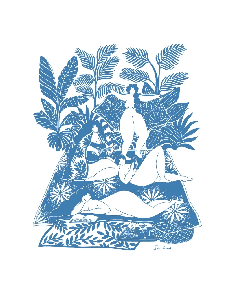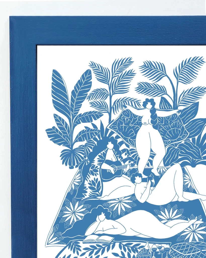 Gozando la vida - 30 x 42 / Marco chato de 3 cm azul ultramar