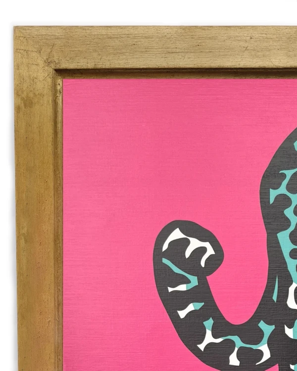 Jaguar al acecho - Rosa / Marco dorado a la hoja con garganta grande - 52x39 cm