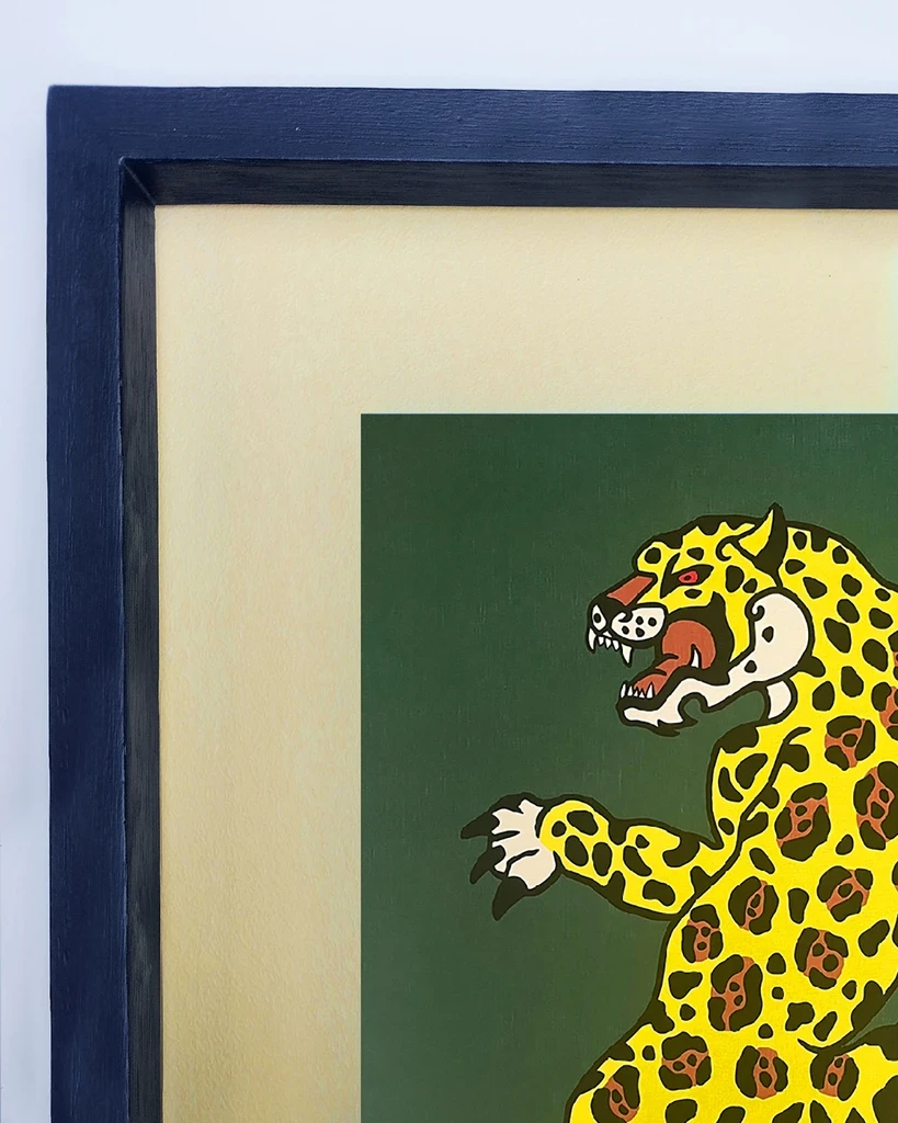 Jaguar Danzante - Verde / Marco negro con fondo ocre grande - 57x44 cm