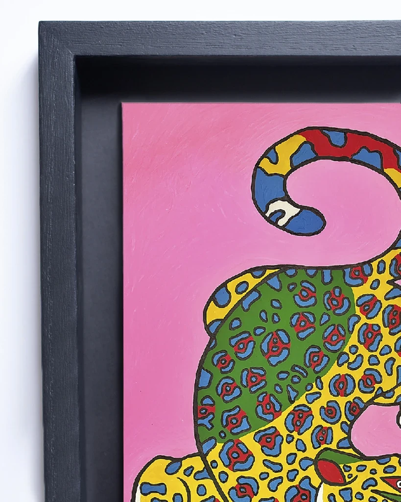 Jaguar Geométrico - 35x50 / Marco negro liso (2 ancho x 3,5 profundidad) + 3 cm de fondo Negro