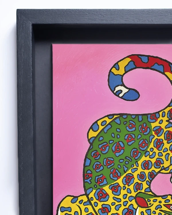 Jaguar Geométrico - 50x70 / Marco negro liso (2 ancho x 3,5 profundidad) + 3 cm de fondo Negro