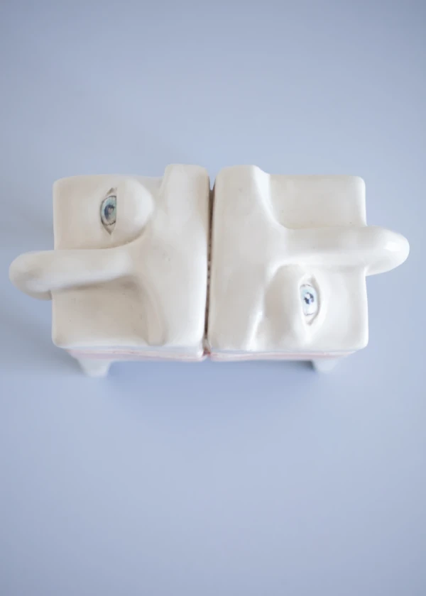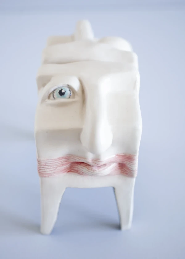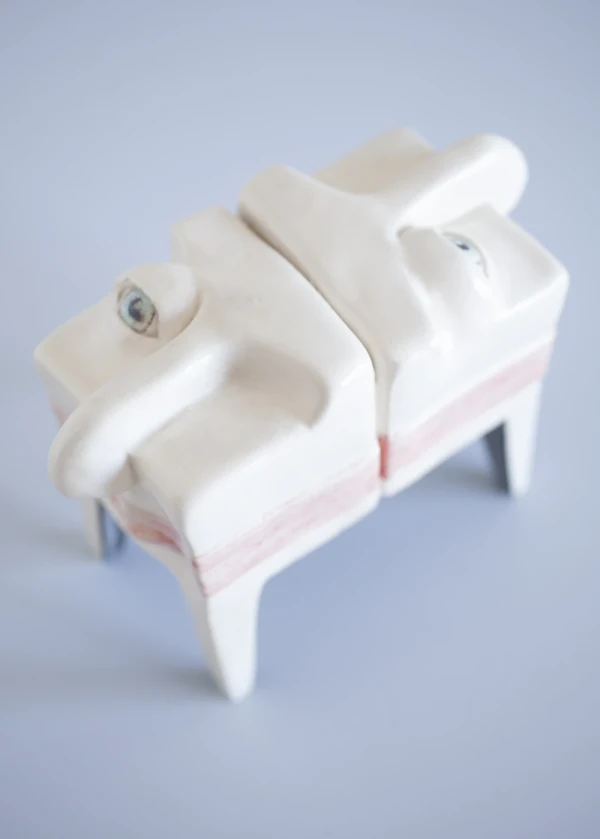 Materiales: Cabezas de ceramica pintada con engobes y esgrafiada.