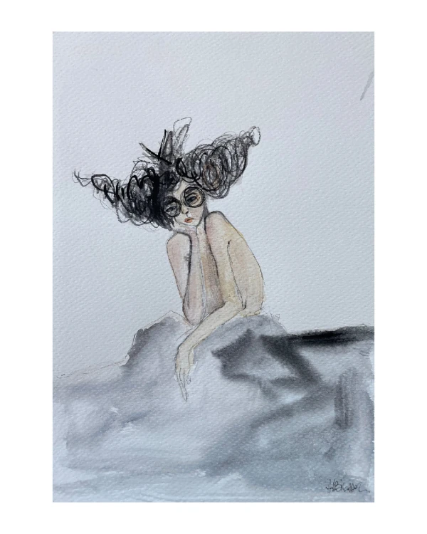 Obra en papel de la artista Alejandra Abigador, la obra mide 15 x 21 pero la medida final del cuadro dependera del marco que elijas