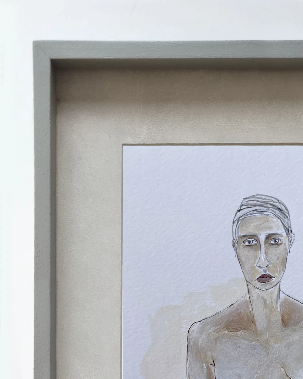 Mujer 3 - Marco tipo box gris + passepartout piedra
