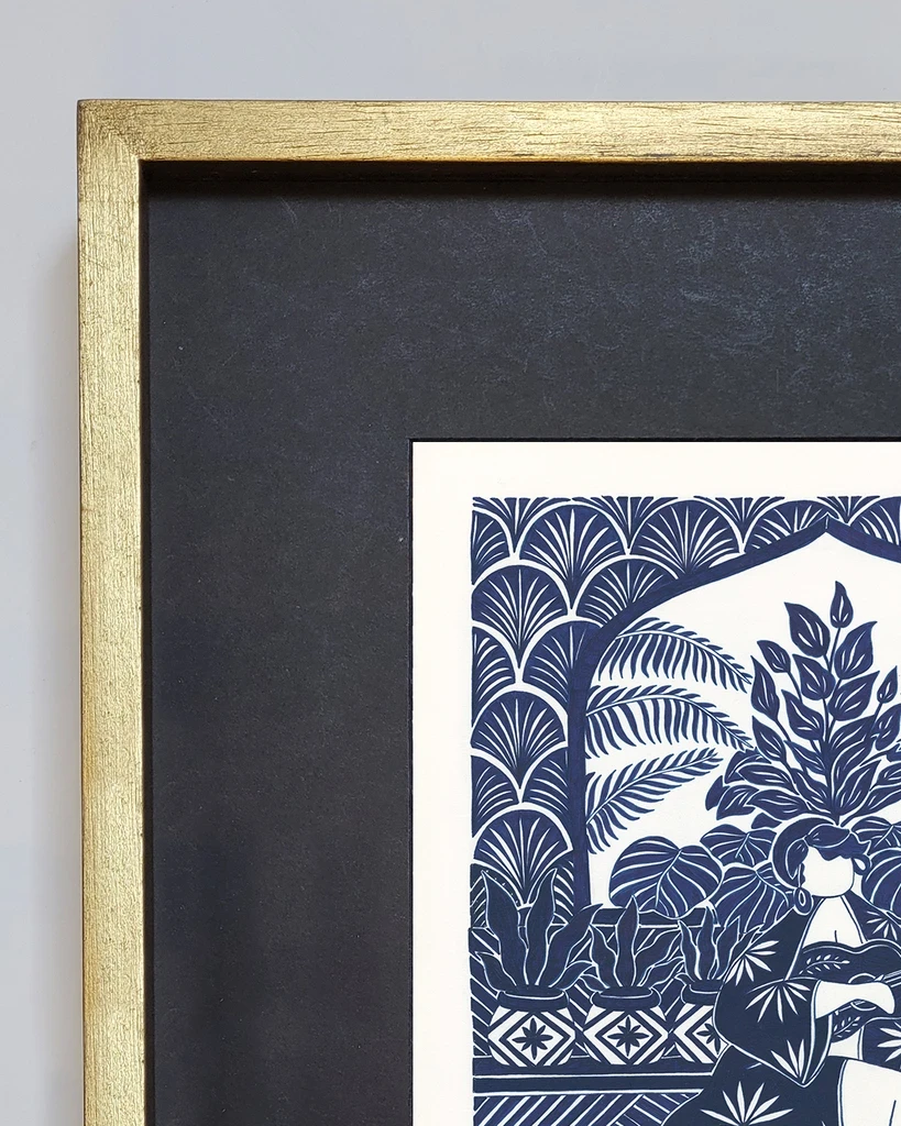 Musa - 30 x 42 / Marco recto en L de 1.5 dorada mas pasepartu negro