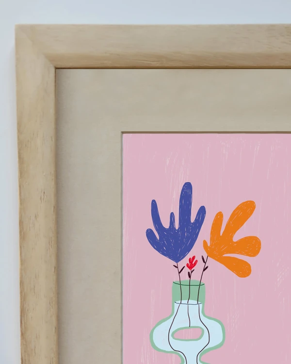 Mushi - 21 x 30 / Marco en chanfel de 3.5 cm en kiri natural mas paspartu piedra