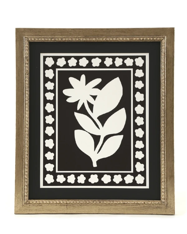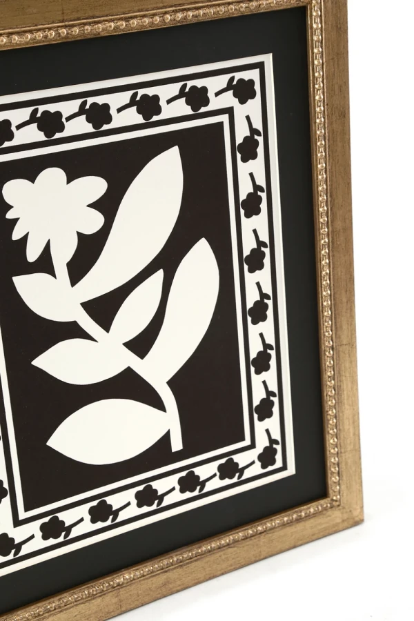 Lámina de Nico Decaro enmarcada con marco dorado de 4 cm con pelotitas y pasepartu negro.