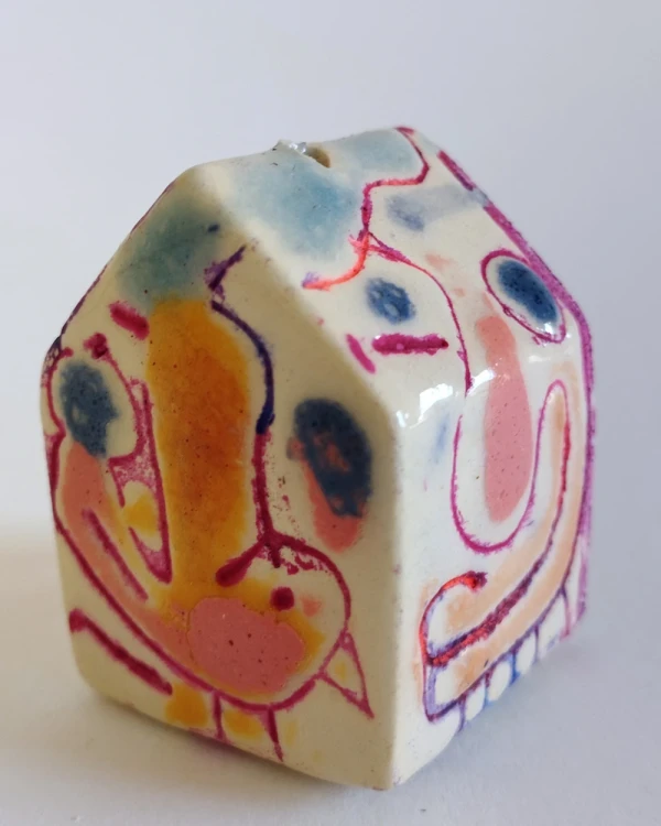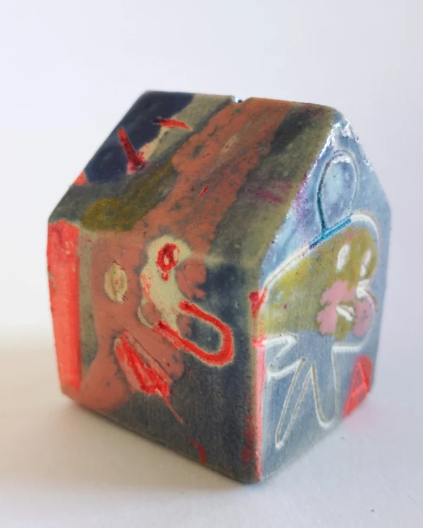 Esta es una serie de casitas pintadas y esgrafiadas sobre esmaltes ceramicos hechas por el diseñador grafico Javier Luengo Bustamante que forma parte de una coleccion de casas de distintos tamaños que conviven en perfecta armonia.