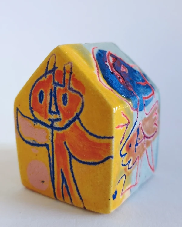 Esta es una serie de casitas pintadas y esgrafiadas sobre esmaltes ceramicos hechas por el diseñador grafico Javier Luengo Bustamante que forma parte de una coleccion de casas de distintos tamaños que conviven en perfecta armonia.