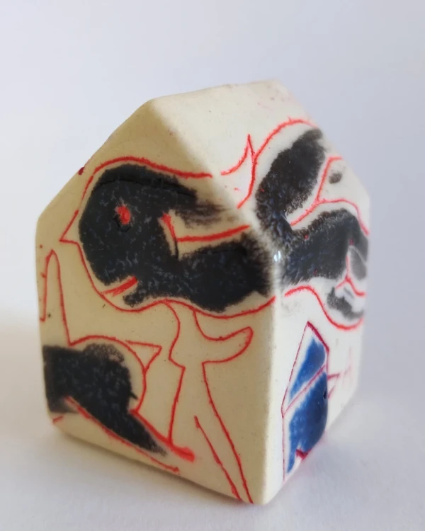 Esta es una serie de casitas pintadas y esgrafiadas sobre esmaltes ceramicos hechas por el diseñador grafico Javier Luengo Bustamante que forma parte de una coleccion de casas de distintos tamaños que conviven en perfecta armonia.