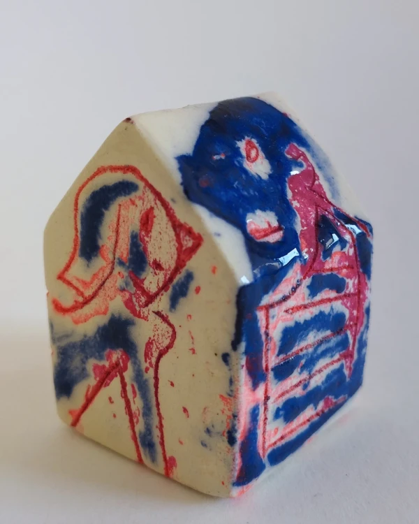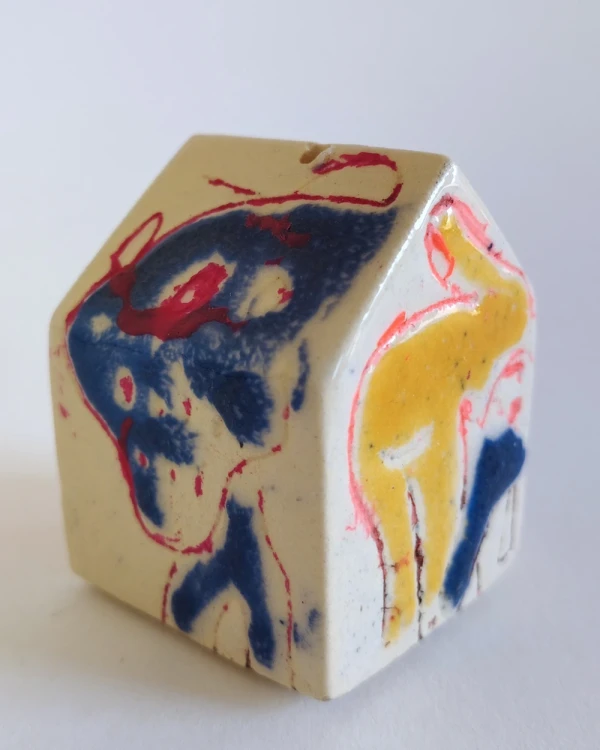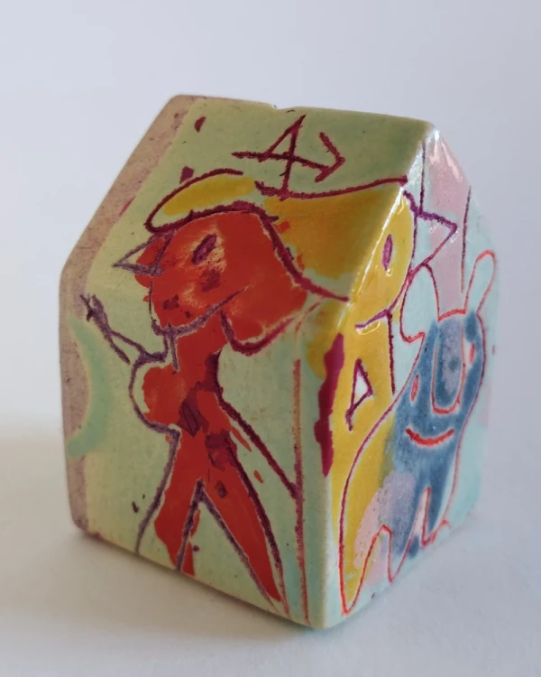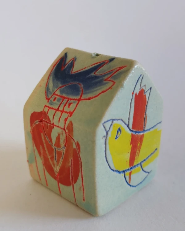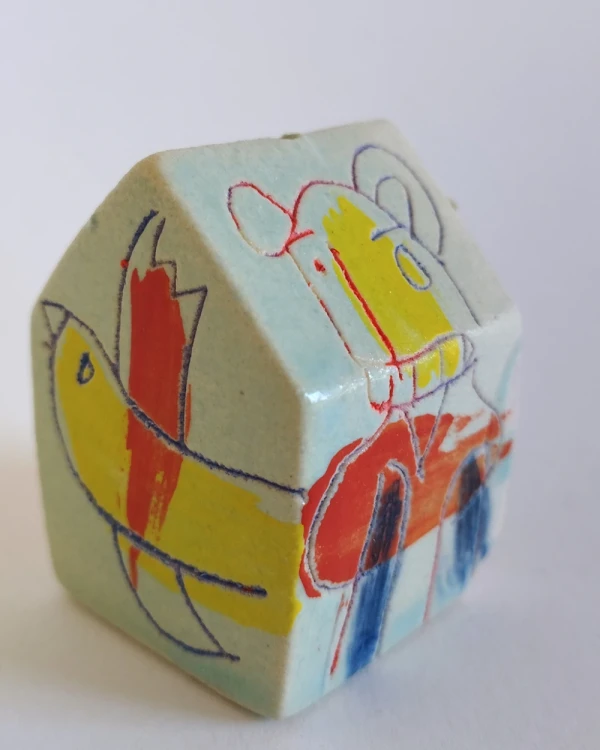 Esta es una serie de casitas pintadas y esgrafiadas sobre esmaltes ceramicos hechas por el diseñador grafico Javier Luengo Bustamante que forma parte de una coleccion de casas de distintos tamaños que conviven en perfecta armonia.