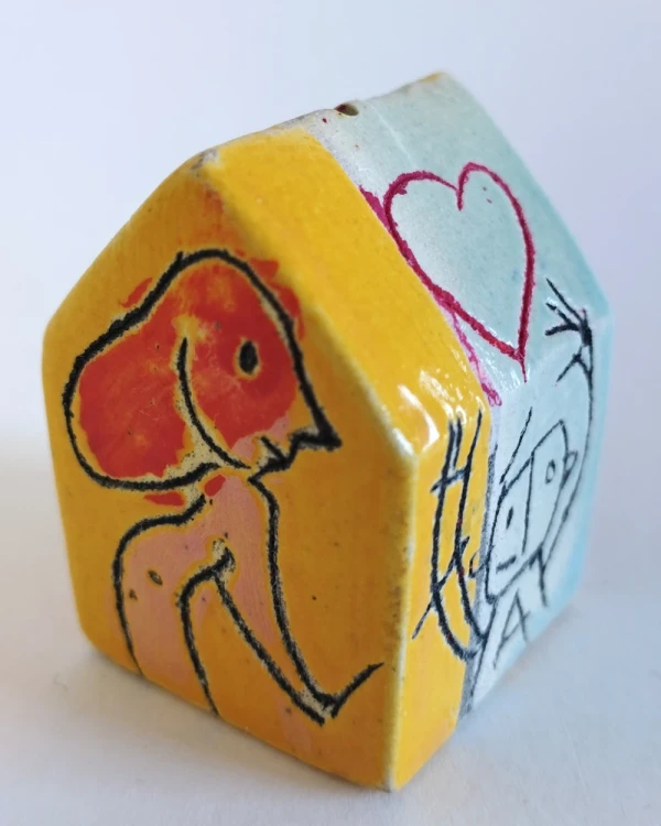Esta es una serie de casitas pintadas y esgrafiadas sobre esmaltes ceramicos hechas por el diseñador grafico Javier Luengo Bustamante que forma parte de una coleccion de casas de distintos tamaños que conviven en perfecta armonia.