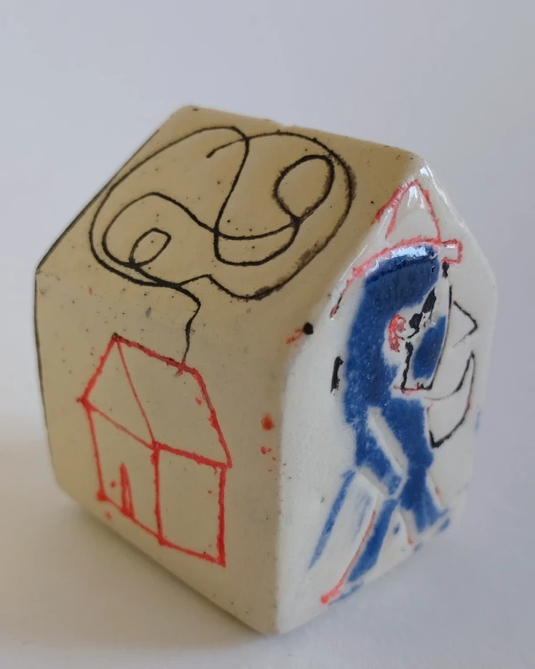 Esta es una serie de casitas pintadas y esgrafiadas sobre esmaltes ceramicos hechas por el diseñador grafico Javier Luengo Bustamante que forma parte de una coleccion de casas de distintos tamaños que conviven en perfecta armonia.