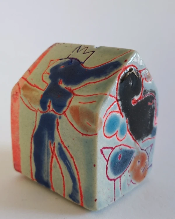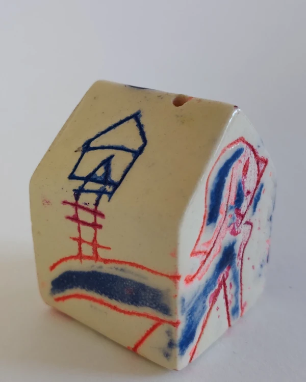 Esta es una serie de casitas pintadas y esgrafiadas sobre esmaltes ceramicos hechas por el diseñador grafico Javier Luengo Bustamante que forma parte de una coleccion de casas de distintos tamaños que conviven en perfecta armonia.