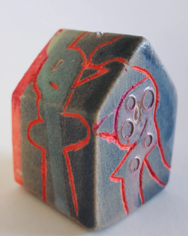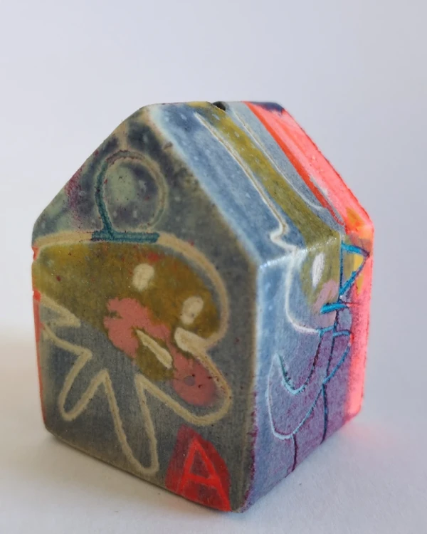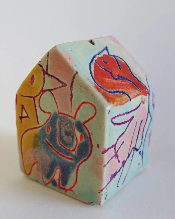 Esta es una serie de casitas pintadas y esgrafiadas sobre esmaltes ceramicos hechas por el diseñador grafico Javier Luengo Bustamante que forma parte de una coleccion de casas de distintos tamaños que conviven en perfecta armonia.