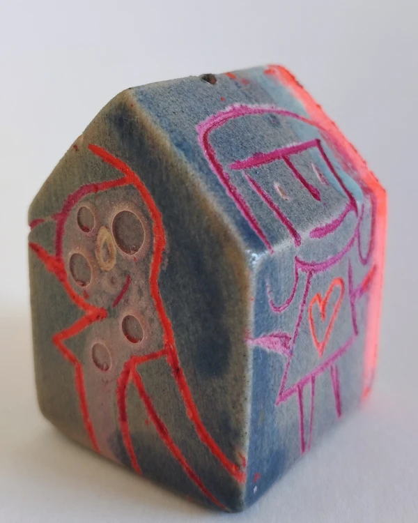 Esta es una serie de casitas pintadas y esgrafiadas sobre esmaltes ceramicos hechas por el diseñador grafico Javier Luengo Bustamante que forma parte de una coleccion de casas de distintos tamaños que conviven en perfecta armonia.