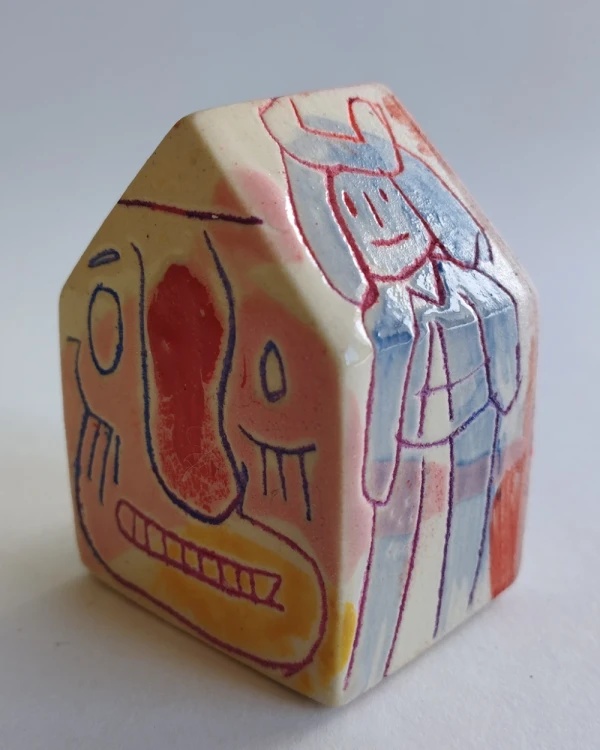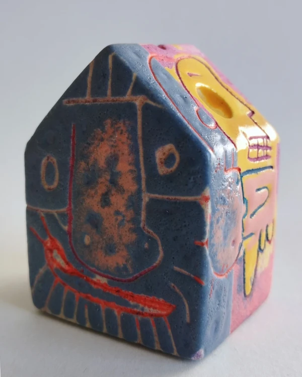 Esta es una serie de casitas pintadas y esgrafiadas sobre esmaltes ceramicos hechas por el diseñador grafico Javier Luengo Bustamante que forma parte de una coleccion de casas de distintos tamaños que conviven en perfecta armonia.