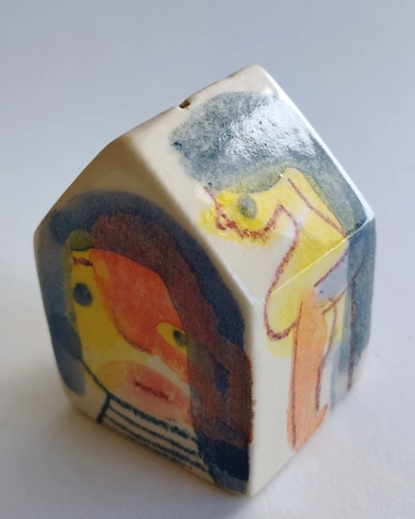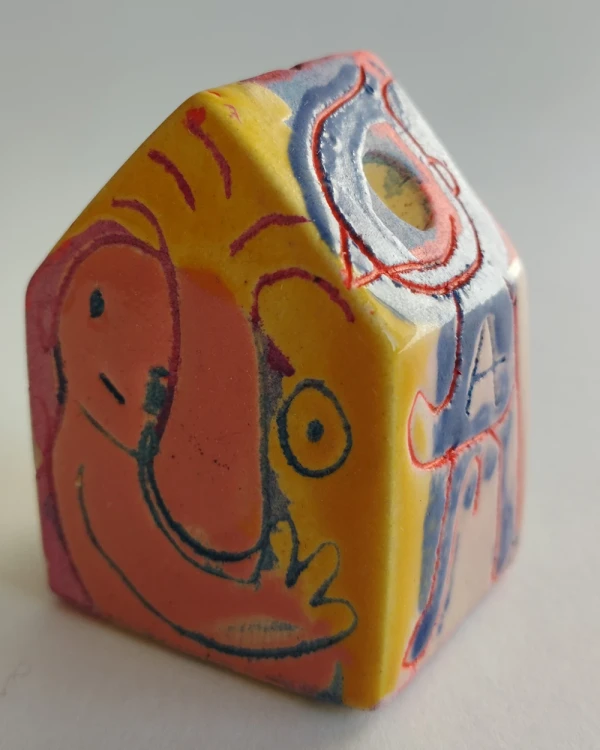 Esta es una serie de casitas pintadas y esgrafiadas sobre esmaltes ceramicos hechas por el diseñador grafico Javier Luengo Bustamante que forma parte de una coleccion de casas de distintos tamaños que conviven en perfecta armonia.