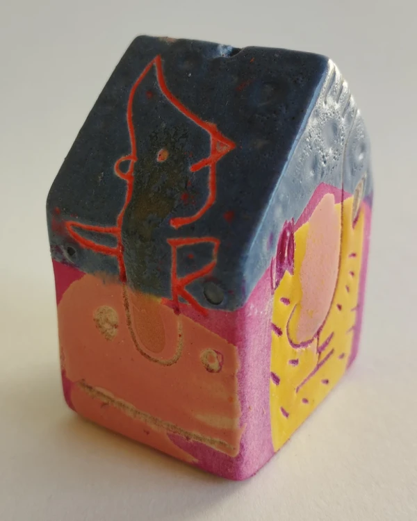 Esta es una serie de casitas pintadas y esgrafiadas sobre esmaltes ceramicos hechas por el diseñador grafico Javier Luengo Bustamante que forma parte de una coleccion de casas de distintos tamaños que conviven en perfecta armonia.