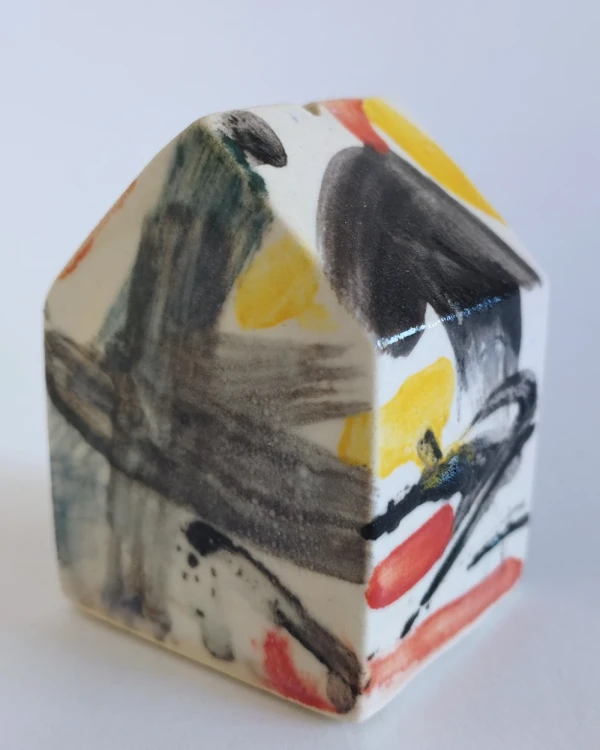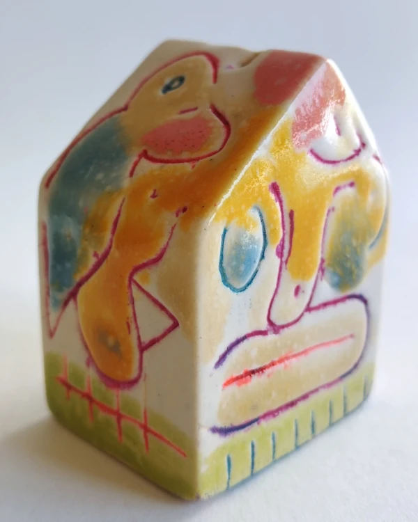 Esta es una serie de casitas pintadas y esgrafiadas sobre esmaltes ceramicos hechas por el diseñador grafico Javier Luengo Bustamante que forma parte de una coleccion de casas de distintos tamaños que conviven en perfecta armonia.