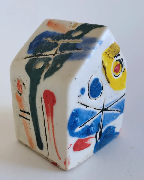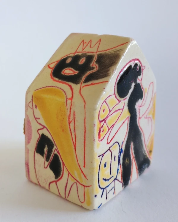 Esta es una serie de casitas pintadas y esgrafiadas sobre esmaltes ceramicos hechas por el diseñador grafico Javier Luengo Bustamante que forma parte de una coleccion de casas de distintos tamaños que conviven en perfecta armonia.