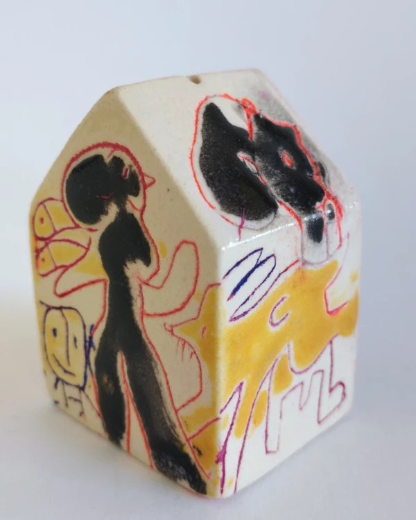 Esta es una serie de casitas pintadas y esgrafiadas sobre esmaltes ceramicos hechas por el diseñador grafico Javier Luengo Bustamante que forma parte de una coleccion de casas de distintos tamaños que conviven en perfecta armonia.