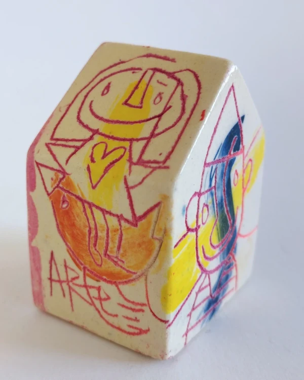 Esta es una serie de casitas pintadas y esgrafiadas sobre esmaltes ceramicos hechas por el diseñador grafico Javier Luengo Bustamante que forma parte de una coleccion de casas de distintos tamaños que conviven en perfecta armonia.