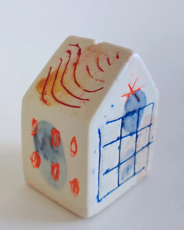 Esta es una serie de casitas pintadas y esgrafiadas sobre esmaltes ceramicos hechas por el diseñador grafico Javier Luengo Bustamante que forma parte de una coleccion de casas de distintos tamaños que conviven en perfecta armonia.