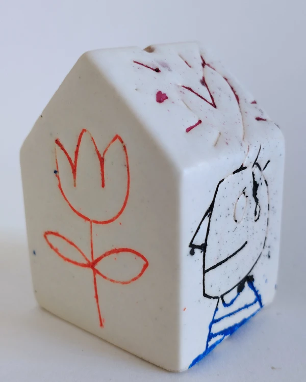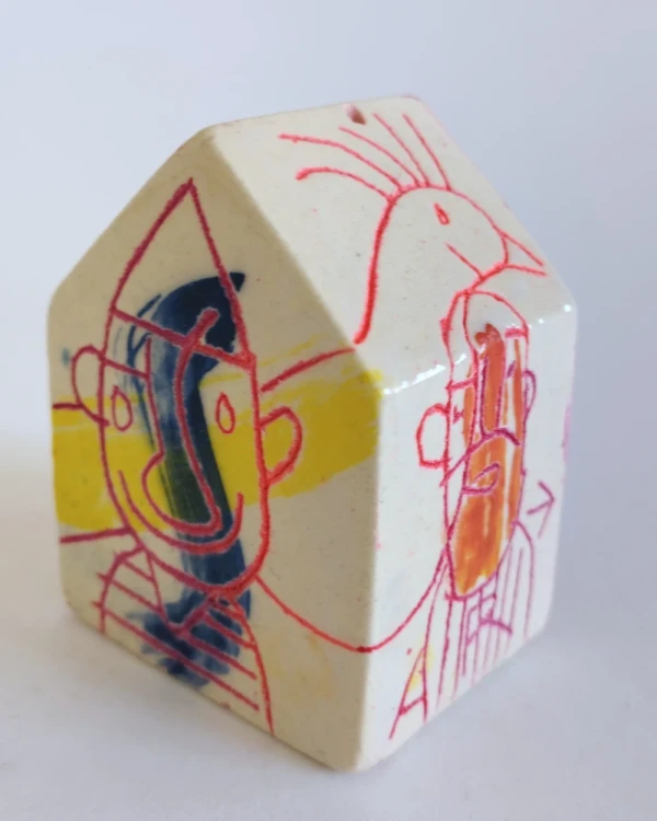 Esta es una serie de casitas pintadas y esgrafiadas sobre esmaltes ceramicos hechas por el diseñador grafico Javier Luengo Bustamante que forma parte de una coleccion de casas de distintos tamaños que conviven en perfecta armonia.