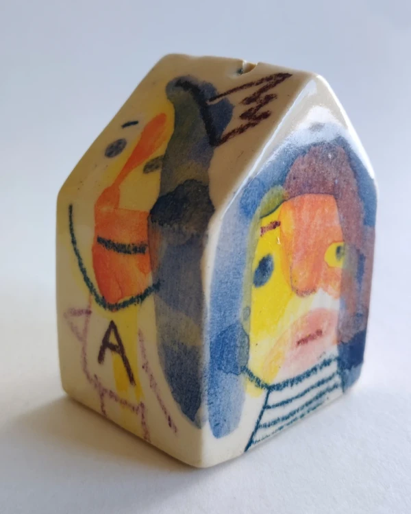 Esta es una serie de casitas pintadas y esgrafiadas sobre esmaltes ceramicos hechas por el diseñador grafico Javier Luengo Bustamante que forma parte de una coleccion de casas de distintos tamaños que conviven en perfecta armonia.