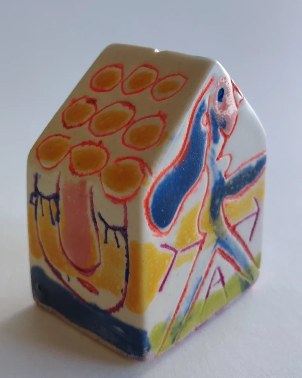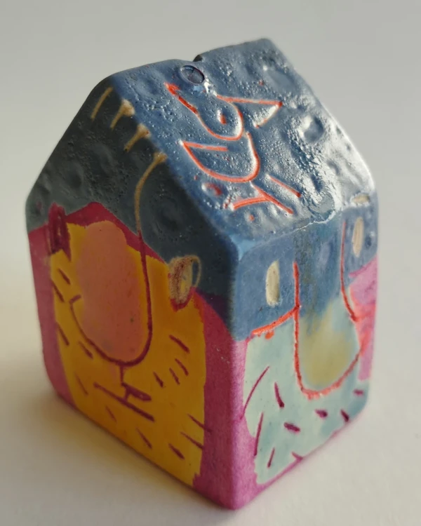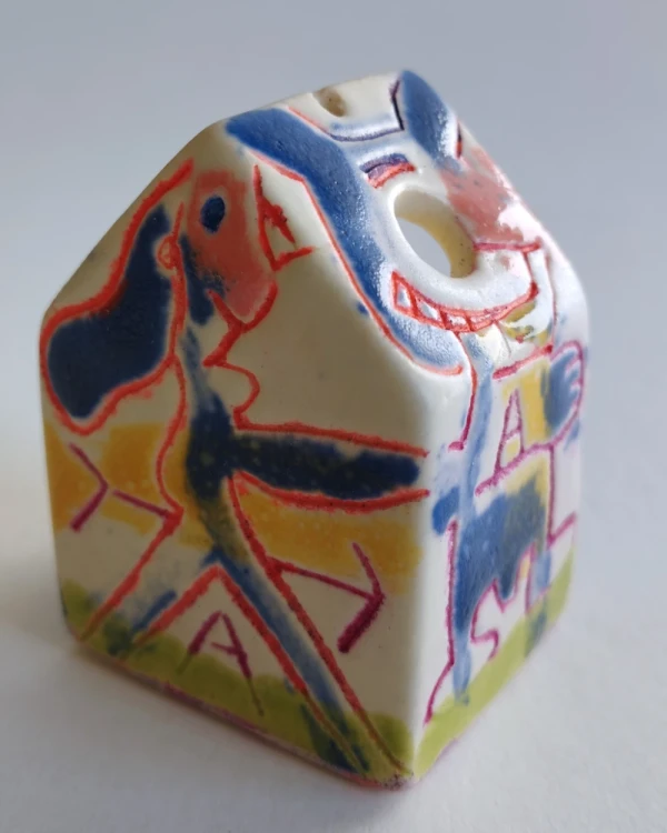 Esta es una serie de casitas pintadas y esgrafiadas sobre esmaltes ceramicos hechas por el diseñador grafico Javier Luengo Bustamante que forma parte de una coleccion de casas de distintos tamaños que conviven en perfecta armonia.