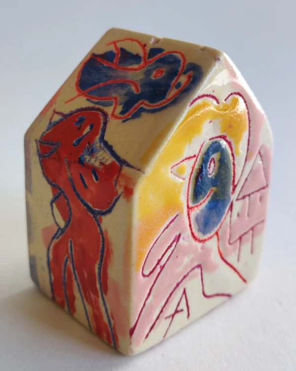 Esta es una serie de casitas pintadas y esgrafiadas sobre esmaltes ceramicos hechas por el diseñador grafico Javier Luengo Bustamante que forma parte de una coleccion de casas de distintos tamaños que conviven en perfecta armonia.