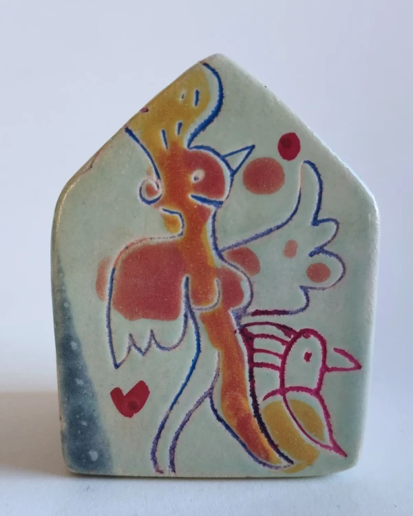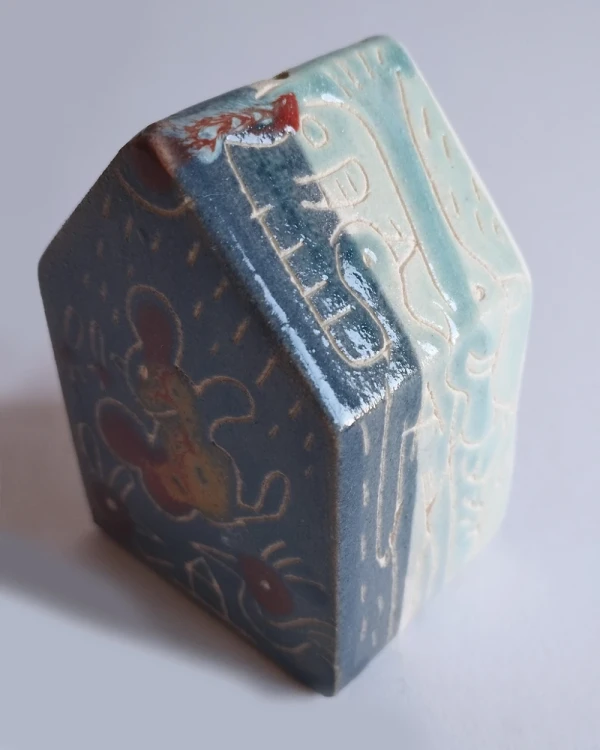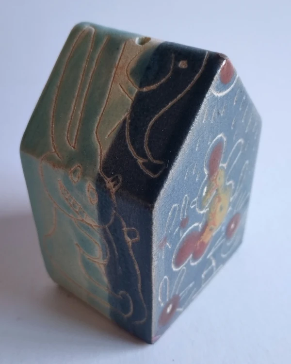 Esta es una serie de casitas pintadas y esgrafiadas sobre esmaltes ceramicos hechas por el diseñador grafico Javier Luengo Bustamante que forma parte de una coleccion de casas de distintos tamaños que conviven en perfecta armonia.
