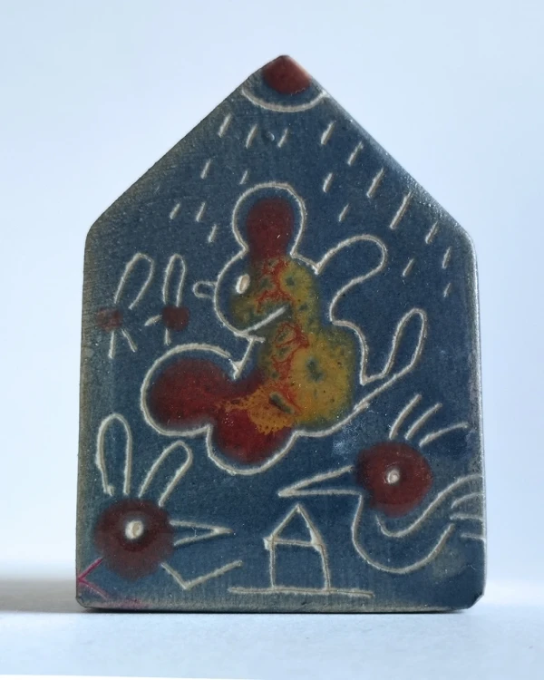 Esta es una serie de casitas pintadas y esgrafiadas sobre esmaltes ceramicos hechas por el diseñador grafico Javier Luengo Bustamante que forma parte de una coleccion de casas de distintos tamaños que conviven en perfecta armonia.